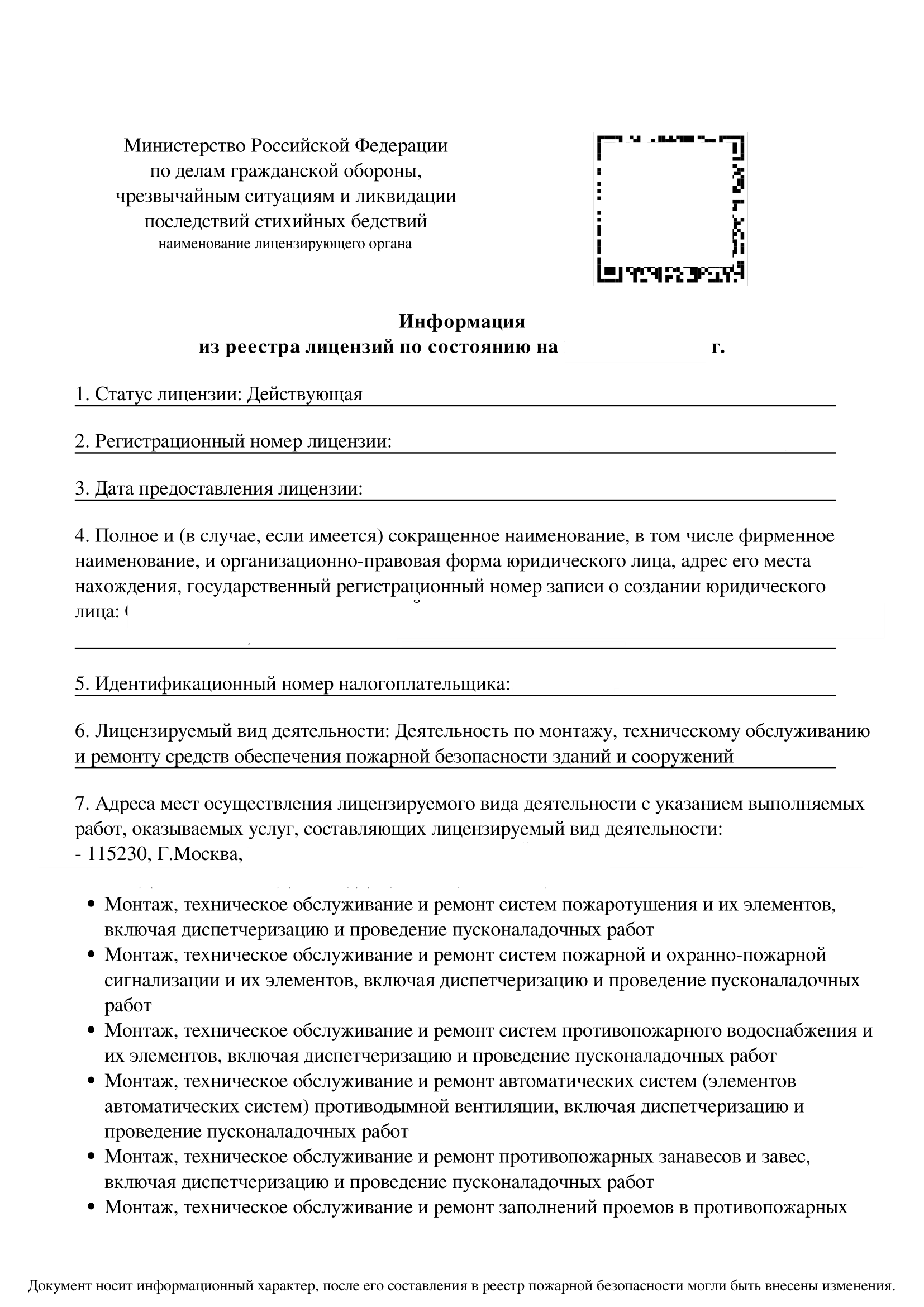 Согласно последним информациям, пожарная лицензия МЧС России является официальным разрешением на осуществление деятельности в сфере противопожарной безопасности. Лицензия позволяет заниматься тушением пожаров, производством работ по монтажу, ремонту и обслуживанию средств обеспечения пожарной безопасности зданий, сооружений, инфраструктуры и производственных объектов.
